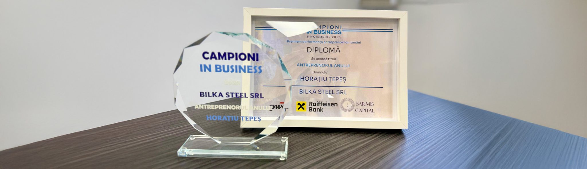Horațiu Țepeș, CEO en oprichter van BILKA, werd tijdens het “Champions in Business” 2025-gala uitgeroepen tot Ondernemer van het Jaar. “Champions in Business” is een project van Raiffeisen Bank en PwC Roemenië dat de best presterende bedrijven en ondernemers van het land bekroont. (7 november 2025).